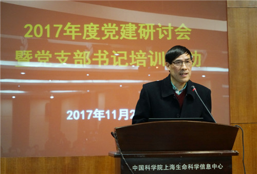 11月22日,上海生科院召开了以“不忘初心、牢记使命、争取新时代合格党员干部”为主题的党建工作研讨会暨支部书记培训活动,此次活动由上海生科院(人口健康领域)、生化与细胞所党委、神经所党委、植生生态所党委联合举办,各机构党员领导干部、两委委员、基层支部书记、部分新党员代表等150余人参加了会议。上海分院分党组副书记、纪检组长,沪区党委副书记、纪委书记田申荣应邀出席活动并授课。会议由上海生科院党委副书记、副院长,生化与细胞所党委书记(兼)倪福弟主持。