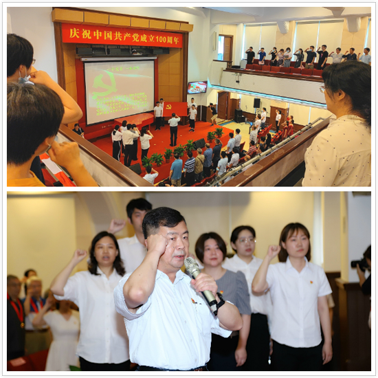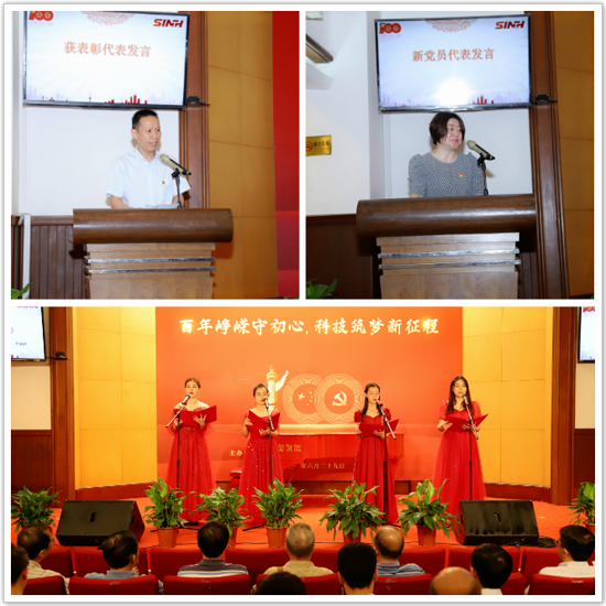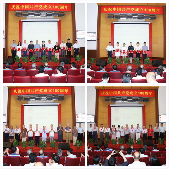会上,通报了近期荣获上级党组织表彰优秀党务工作者、优秀共产党员、先进基层党组织名单;对研究所优秀共产党员、优秀党务工作者进行了表彰;蔡澎、朱熊向21名老同志代表颁发了“光荣在党50年”纪念章,全场用热烈的掌声向老党员们致以崇高敬意。近两年新入党的5名党员面对鲜红的党旗郑重庄严宣誓,全场党员一起重温入党誓词,洪亮坚定的誓言响彻会场。在报告环节,翟琦巍研究员代表获表彰人员报告了为党工作的心得体会;新党员代表詹丽杏研究员报告了自己加入组织的心路历程;在隆重纪念、表彰先进、尊老感恩的氛围中,研究所青年党团员以诗言志,通过朗诵形式向党报告自己坚定理想的信念和岗位建功的决心。活动中,受邀赴京参加庆祝建党100周年活动的研究所所长李林院士,以及副所长胡国宏等班子成员,以视频形式为党的生日和研究所未来发展送上诚挚祝福。