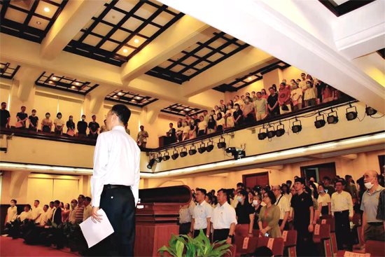 主题报告会最后在全场齐声合唱《没有共产党就没有新中国》的嘹亮歌声中落下帷幕。会后,深受鼓舞的科研骨干第一时间向党组织递交了入党志愿书。会议营造的激昂氛围和传递的精神理念,极大地激发了师生员工干事创业的激情与信心,为激励营养与健康所人面向人民生命健康创新主责主业、锻造国家战略科技力量核心竞争力提供了强大的精神动力。
