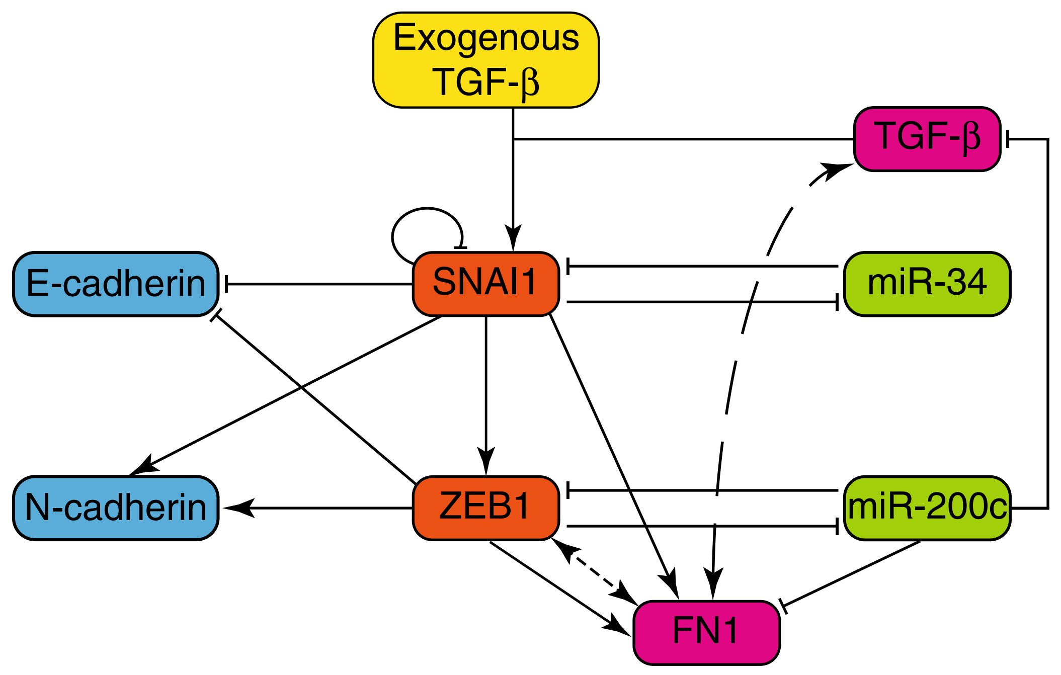 科研人员通过实验与计算模拟的方式,揭示了动态诱导的竞争性内源RNA直接作用于经典的双负反馈回路,并对EMT的动态调控起核心作用。90%以上的癌症死亡均与转移相关,而EMT是调控肿瘤转移的核心机制。这些研究成果为癌症的EMT过程中竞争性内源RNA的研究建立了方法,更为肿瘤转移提供了潜在治疗靶点。该成果也可应用于进化等复杂非线性生物过程的研究。