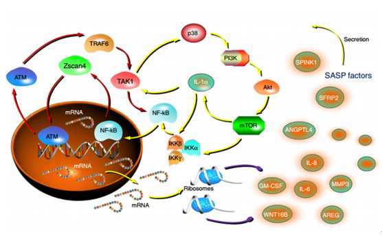 4月30日,国际学术期刊Nature Communications在线发表了中科院上海营养与健康研究院孙宇研究组题为The senescence-associated secretory phenotype is potentiated by feedforward regulatory mechanisms involving Zscan4 and TAK1 的最新研究成果,文章报道了由药物毒副作用引发DNA损伤效应在临床治疗过程中引发体内细胞发生被动衰老,并在诱导衰老细胞出现一种强烈、持续和长期的分泌表型(senescence-associated secretory phenotype,SASP,衰老相关分泌表型)过程中的关键作用。