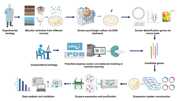 图示:基于实验富集筛选和数据驱动的计算模拟方法挖掘新型真菌毒素降解酶