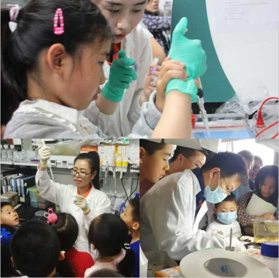 两天内,一批实验室集中向学生和公众开放,“从脂肪的角度告诉你肥胖的秘密”、“健康饮食、合理运动”、“多能干细胞与再生医学”、“基因编辑:从一到万”“褐家鼠的全球扩散与丝绸之路”、“嘿,智人!——探索人类起源的奥秘”等主题科普互动实验,既有科学性又有趣味性,激发了大家对科学的浓厚兴趣。 “肠道菌群与人体健康”、“大数据在脑科学中的应用”、“神奇的动物助理再生科学研究”三个专题讲座吸引了一大批高年级中学生的目光。一位高中生物老师带队参加完活动后由衷的表达到:“我们不仅学到了新的知识,学生心中的疑问得到了科学家的一一解答,也通过在实验室里同学们的亲身体验,让他们越发感受到科学的魅力”。