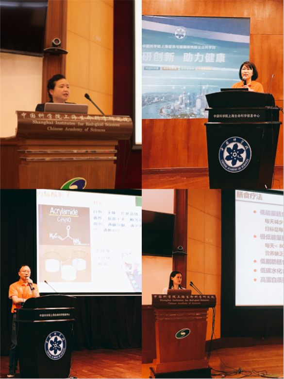 在今年首场活动“对话科学家”环节,廖侃副院长代表单位作了热情洋溢的欢迎词。中国科学院营养代谢与食品安全重点实验室主任郭非凡研究员作了题为“营养感应与健康”的科普报告,报告以科学视角介绍了人体必需的营养素、营养不良和营养过剩现象等,并结合其实验室研究工作,系统解读了营养感应的机制以及与代谢疾病的关系等;尹慧勇研究员结合前段时间舆论广泛讨论以咖啡中的致癌物事件为引线,用诙谐幽默而又深意的语言解读了现实舌尖上的安全问题。