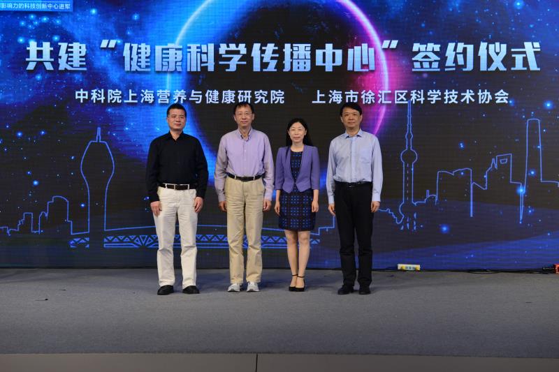 此外,为落实上海市《健康上海2030规划纲要》,在徐汇科技节开幕式上,营养与健康研究院和徐汇区科协签约成立了“健康科学传播中心”,该中心将探索研发健康科学传播内容,打造健康科学传播志愿者队伍,开拓健康科学传播渠道,努力形成公众健康科学普及的示范效应。