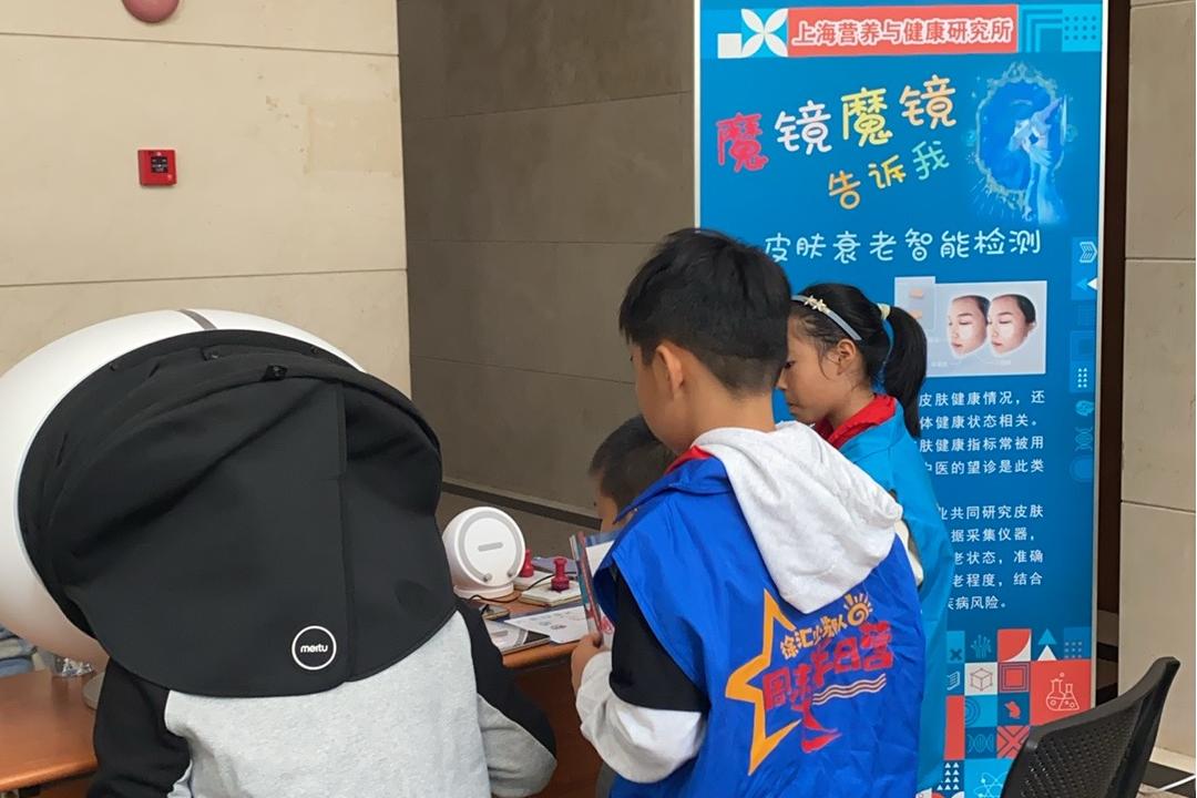 现实世界里的“魔镜”也许无法告诉大家谁是世界上最美丽的人,但它可以快速精准检测皮肤衰老状态,结合大数据分析,评估个体衰老程度,为预测潜在疾病风险提供参考。其背后的原理是皮肤状态可能与多种疾病、精神及身体健康状态相关,在医学研究中,各项皮肤健康指标常被用于评估人体健康水平。中国科学院营养工程实验室皮肤健康部在科普现场设置检测仪器,其强大的功能吸引了众多科学爱好者在展台周围排起长队等待检测和体验。