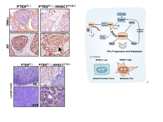 图:WHSC1促进PTEN缺失惰性前列腺肿瘤形成高转移性前列腺癌及其作用模式