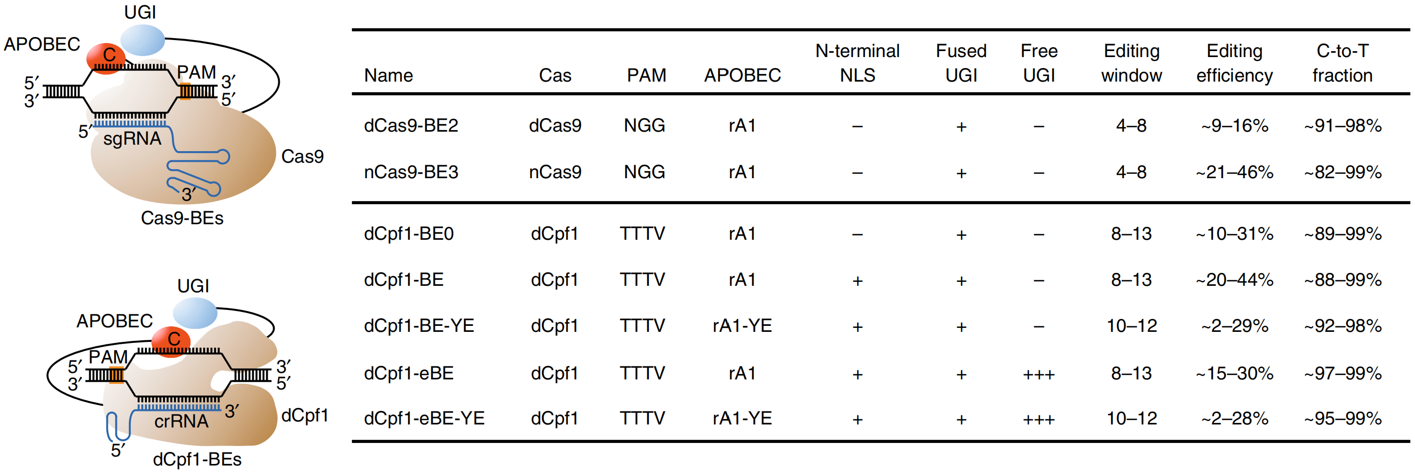 Cas9碱基编辑器与Cpf1碱基编辑器的特点比较