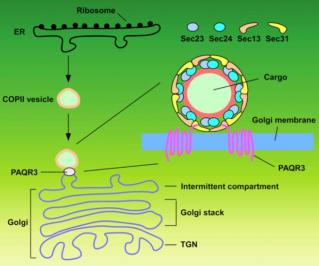 图示:PAQR3调控COPII小泡的ER-to-Golgi转运模型