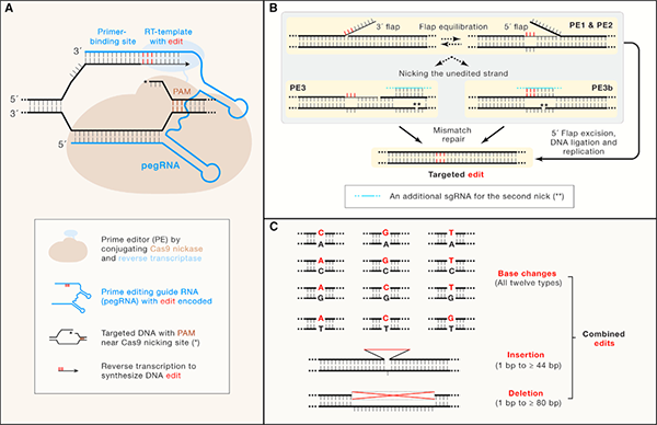 (A)PE系统示意图(B)PE系统的创建历程(C)PE系统可以介导的编辑类型