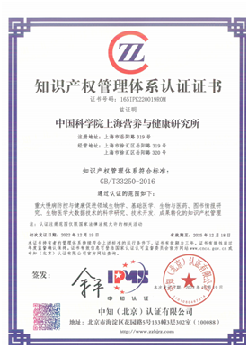 12月19日,中科院上海营养与健康研究所通过《科研组织知识产权管理规范》(GB/T33250-2016)国家标准审核认证,获得《知识产权管理体系认证证书》。认证范围覆盖重大慢病防控与健康促进领域生物学、基础医学、生物与医药、图书情报研究、生物医学大数据技术的科学研究、技术开发、成果转化的知识产权管理。