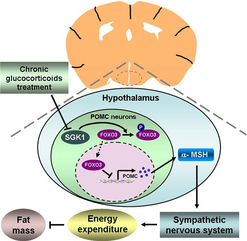 图:下丘脑POMC神经元SGK1/FOXO3信号调控慢性糖皮质激素引起的肥胖