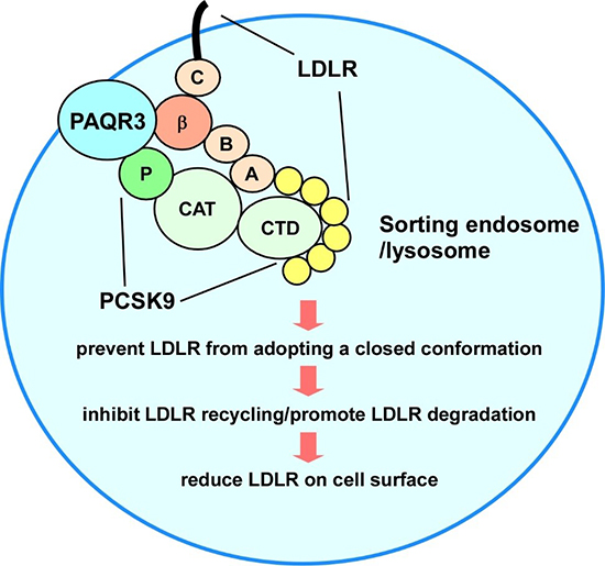 图示:PAQR3调控LDLR-PCSK9相互作用的模式图