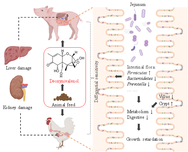 图1. DON毒素在靶标动物猪和肉鸡中诱导的毒性损伤