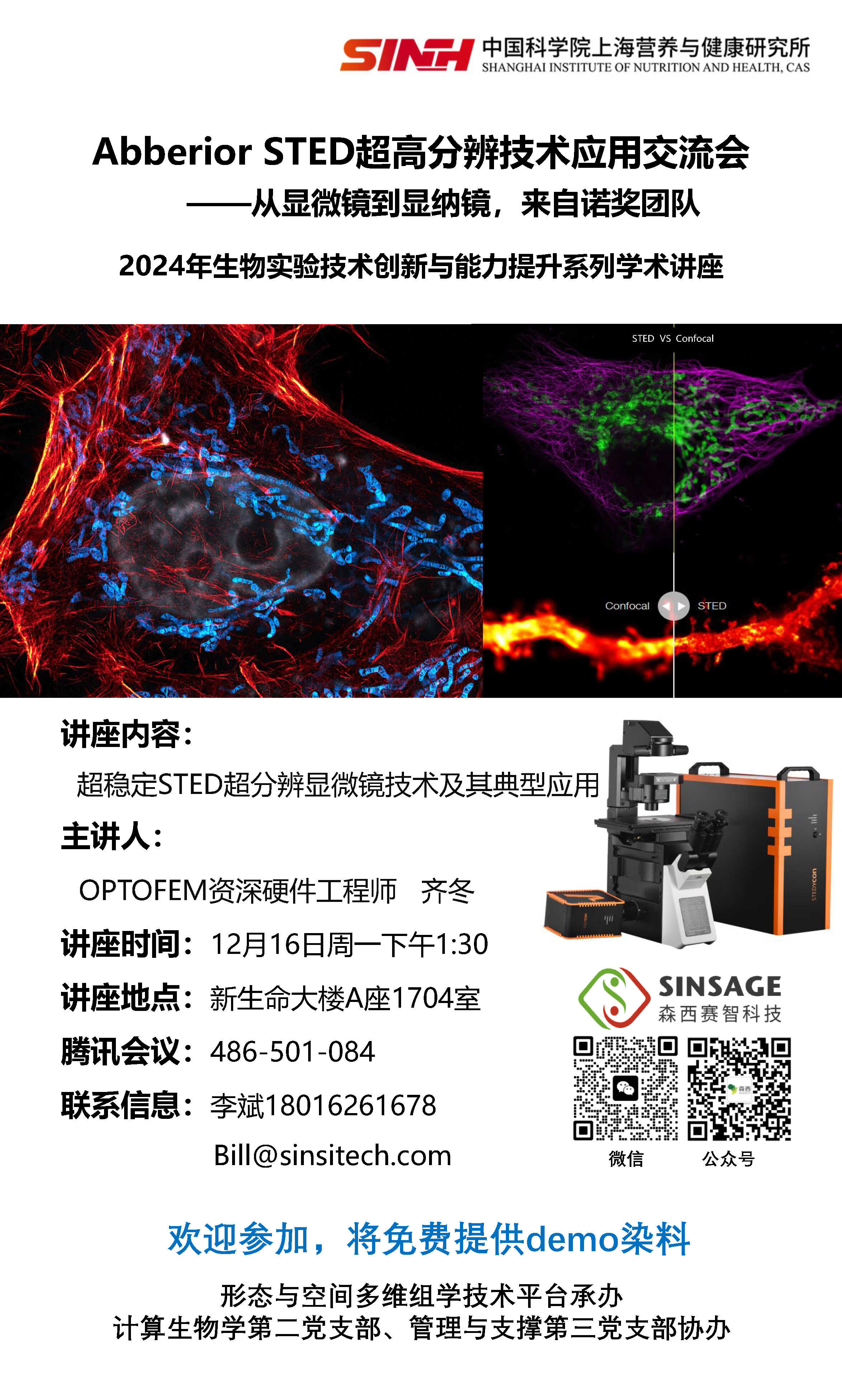 Abberior STED超高分辨技术应用交流会|2024年生物实验技术创新与能力提升系列学术讲座