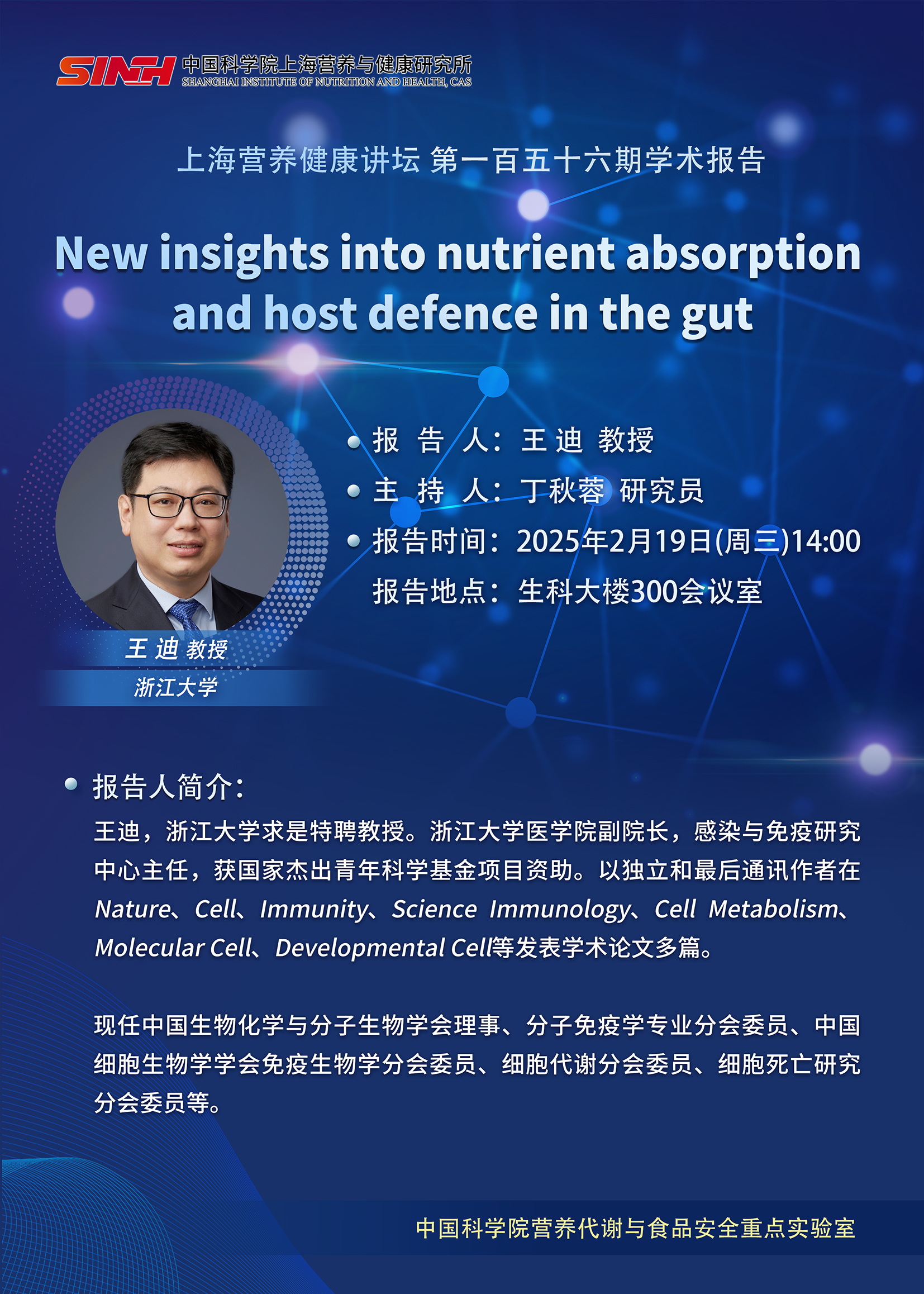 2月19日|New insights into nutrient absorption and host defence in the gut-上海营养健康讲坛