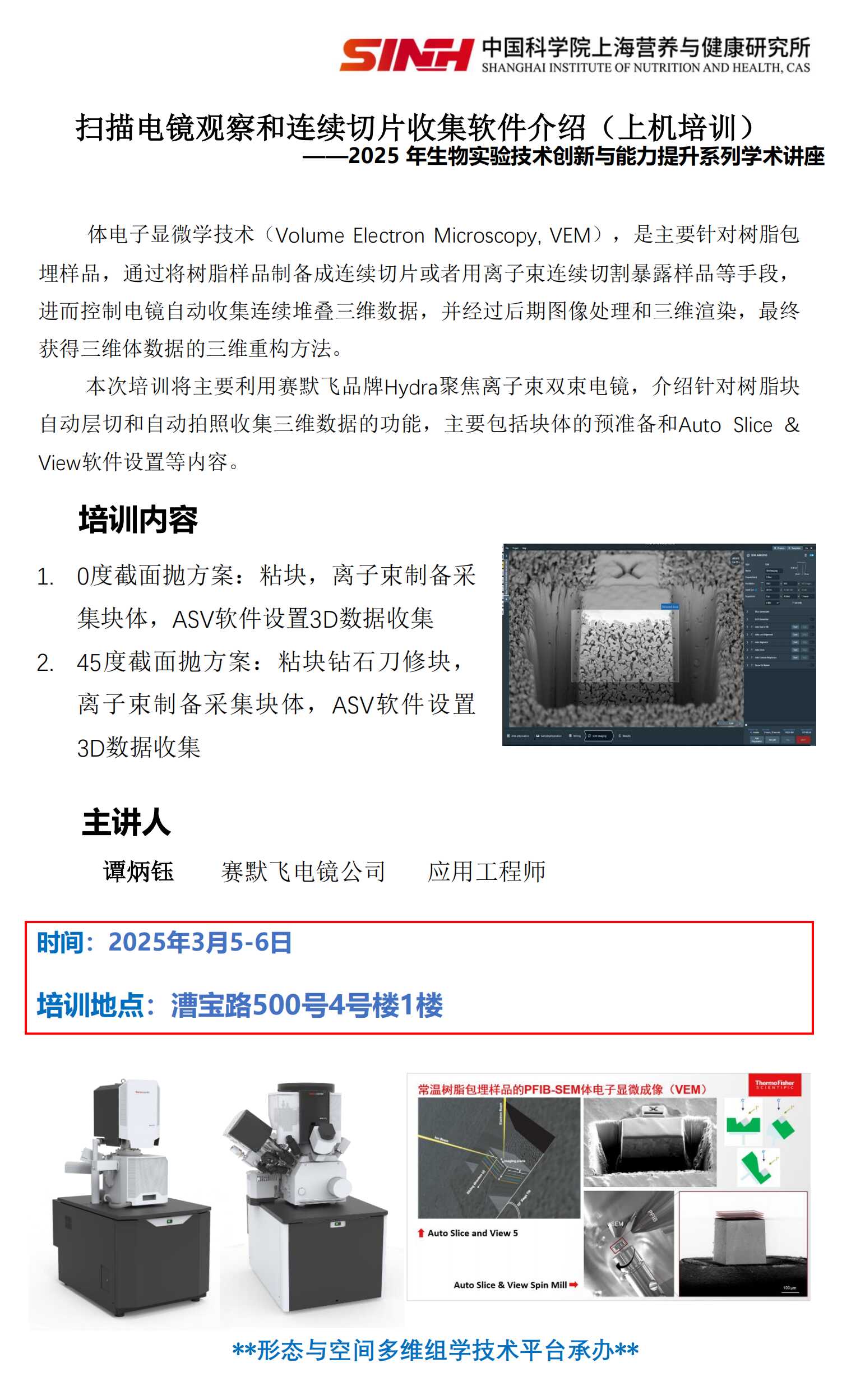 3月5-6日|扫描电镜观察和连续切片收集软件介绍(上机培训)-2025年生物实验技术创新与能力提升系列学术讲座