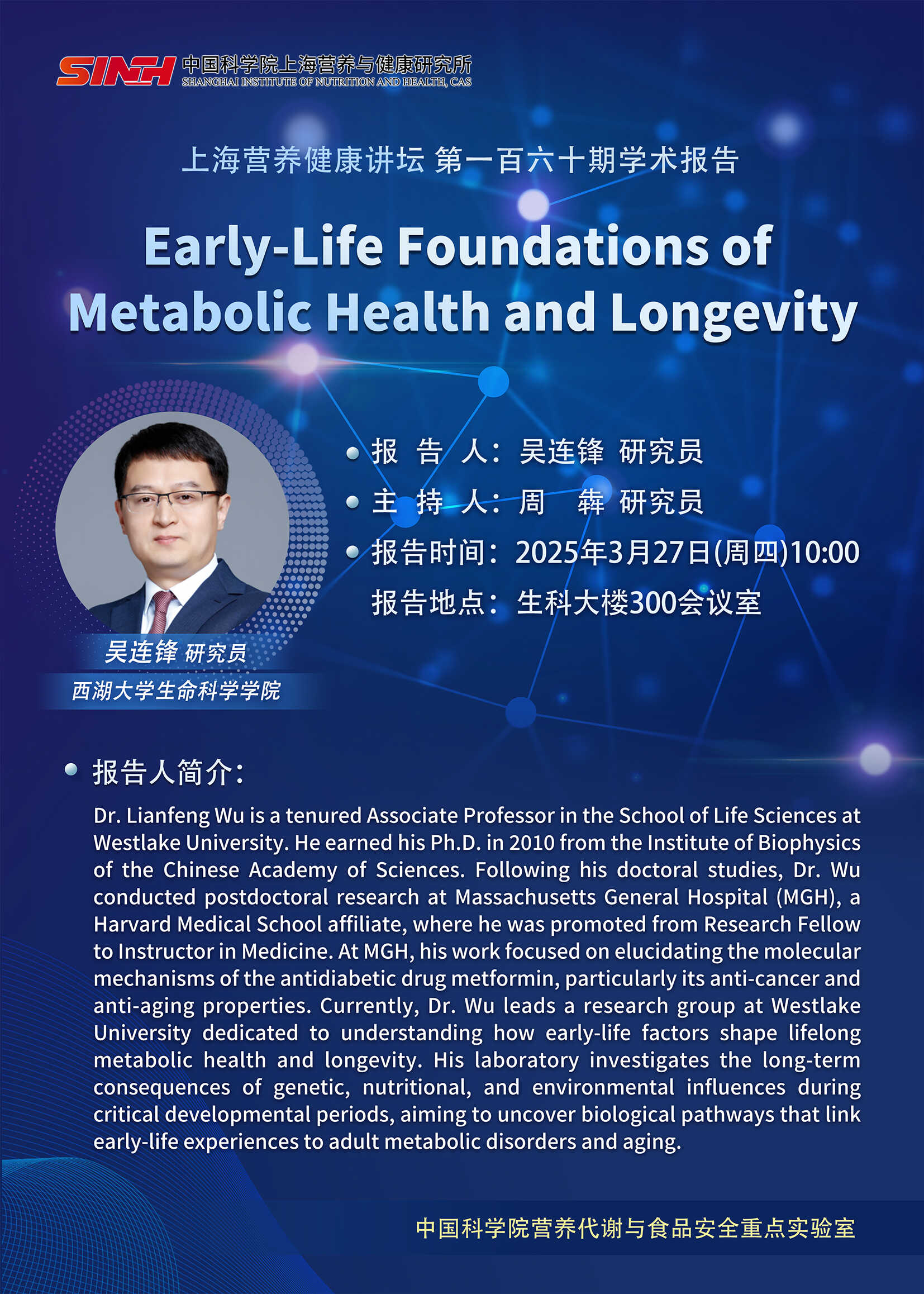 3月27日|Early-Life Foundations of Metabolic Health and Longevity-上海营养健康讲坛