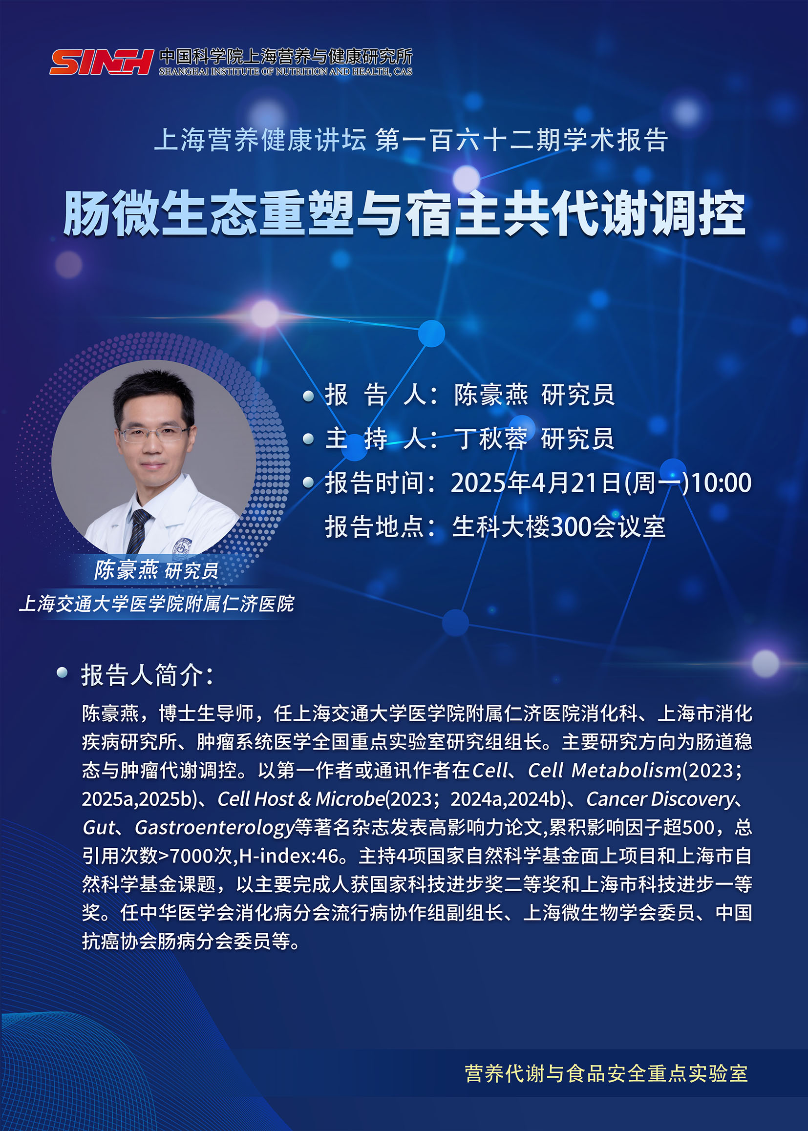 4月21日|肠微生态重塑与宿主共代谢调控-上海营养健康讲坛