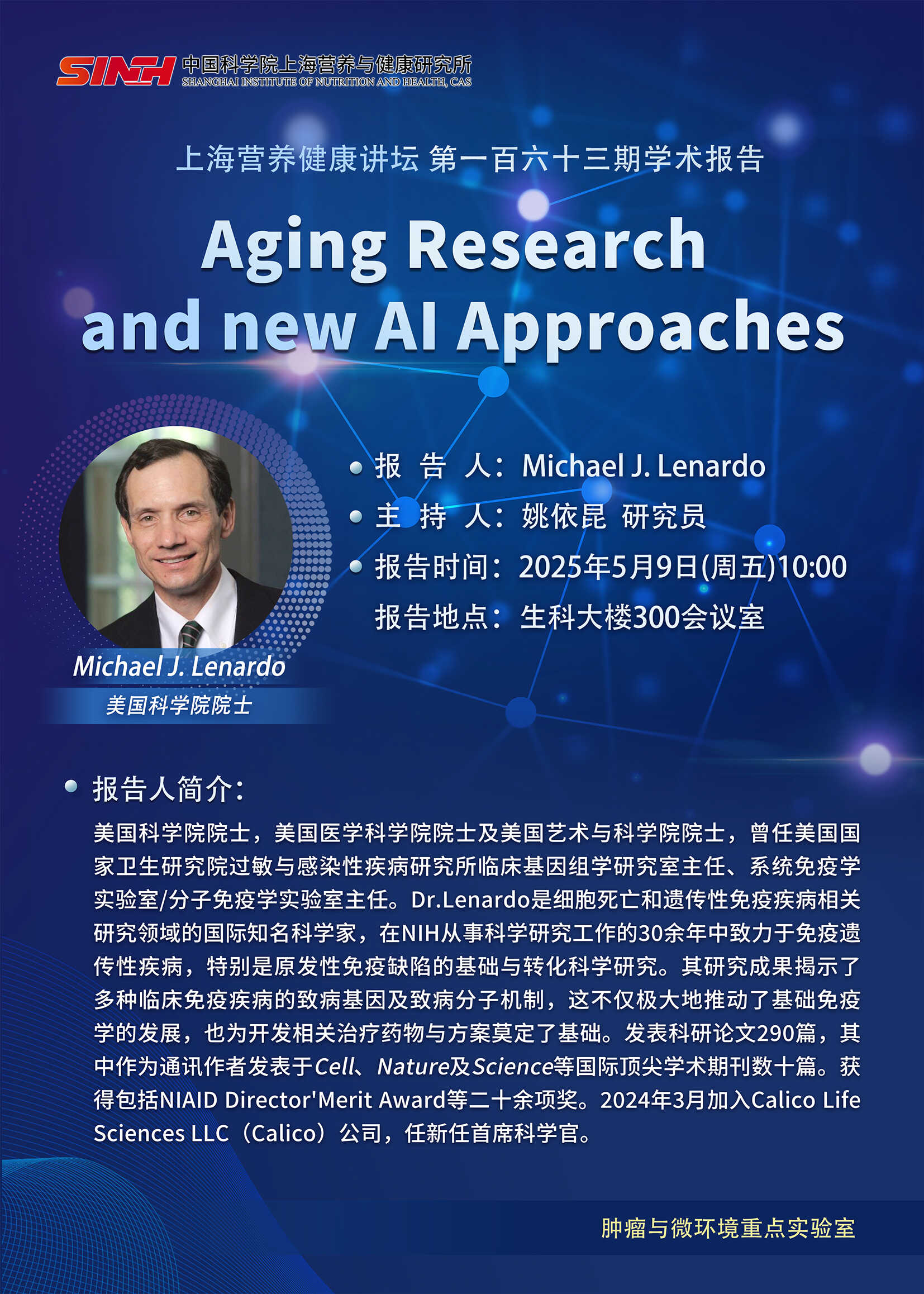 5月9日|Aging Research and New AI Approaches-上海营养健康讲坛
