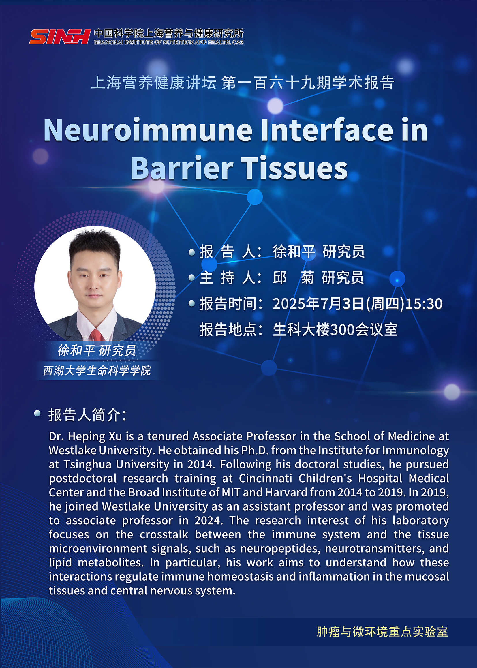 7月3日|Neuroimmune Interface in Barrier Tissues-上海营养健康讲坛
