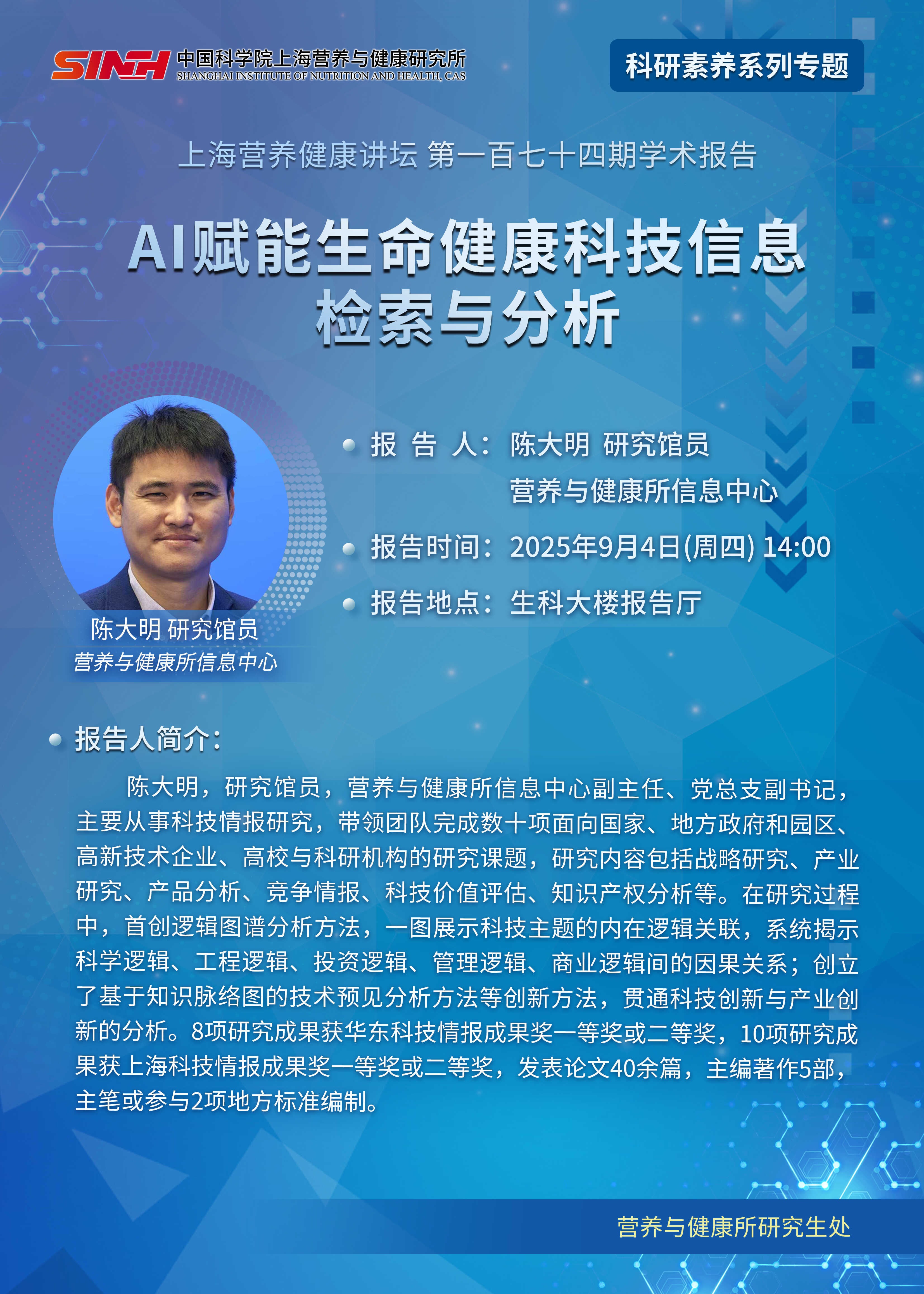 9月4日|AI赋能生命健康科技信息检索与分析-上海营养健康讲坛
