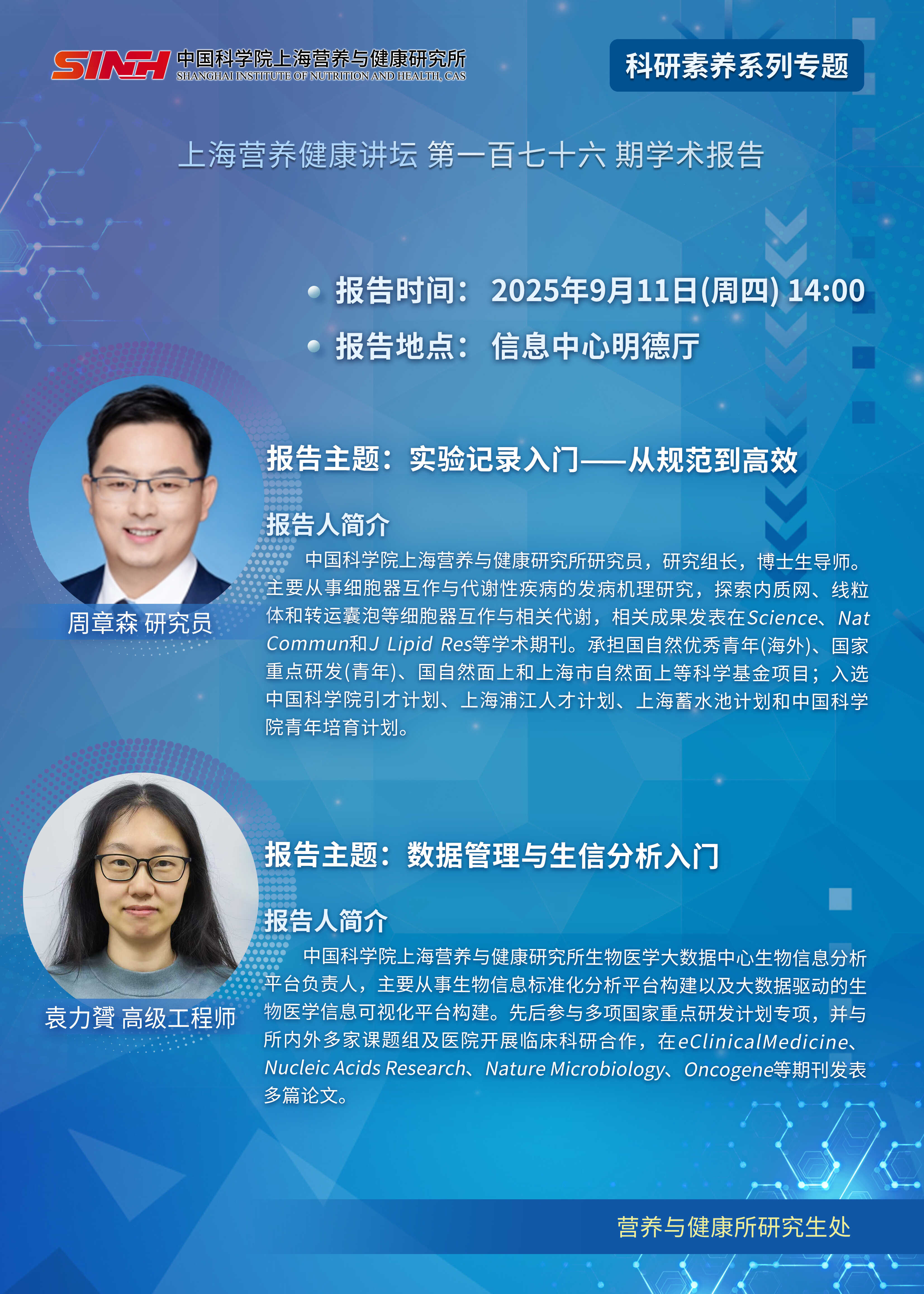 9月11日|实验记录入门——从规范到高效;数据管理与生信分析入门-上海营养健康讲坛