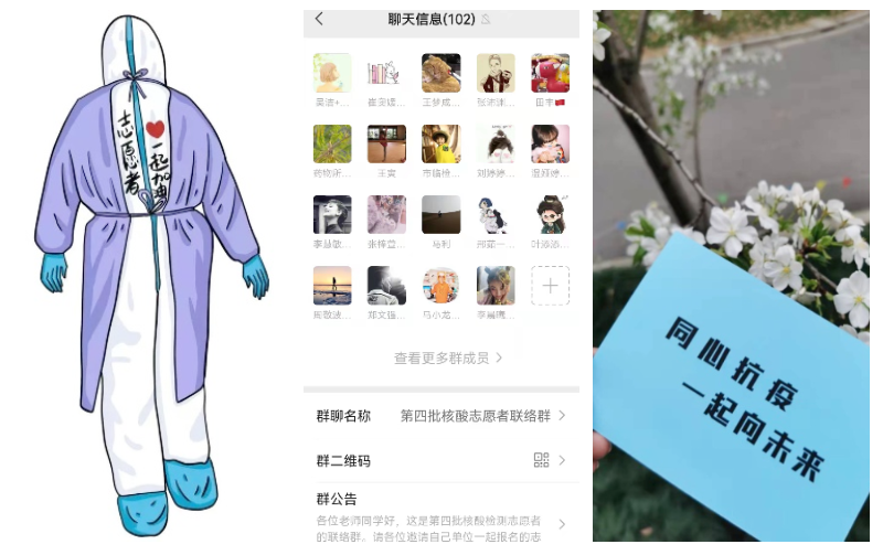 虽然我就干了2天就被封了,虽说我们抗疫小分队一线人数一天比一天少,但是我们抗疫的信心和决心坚如磐石,一线队友继续加油,我们虽然身不在一线,我们在你们身后支持你们,等我们归来一起扛! ——倪珏华(网络与传播部)