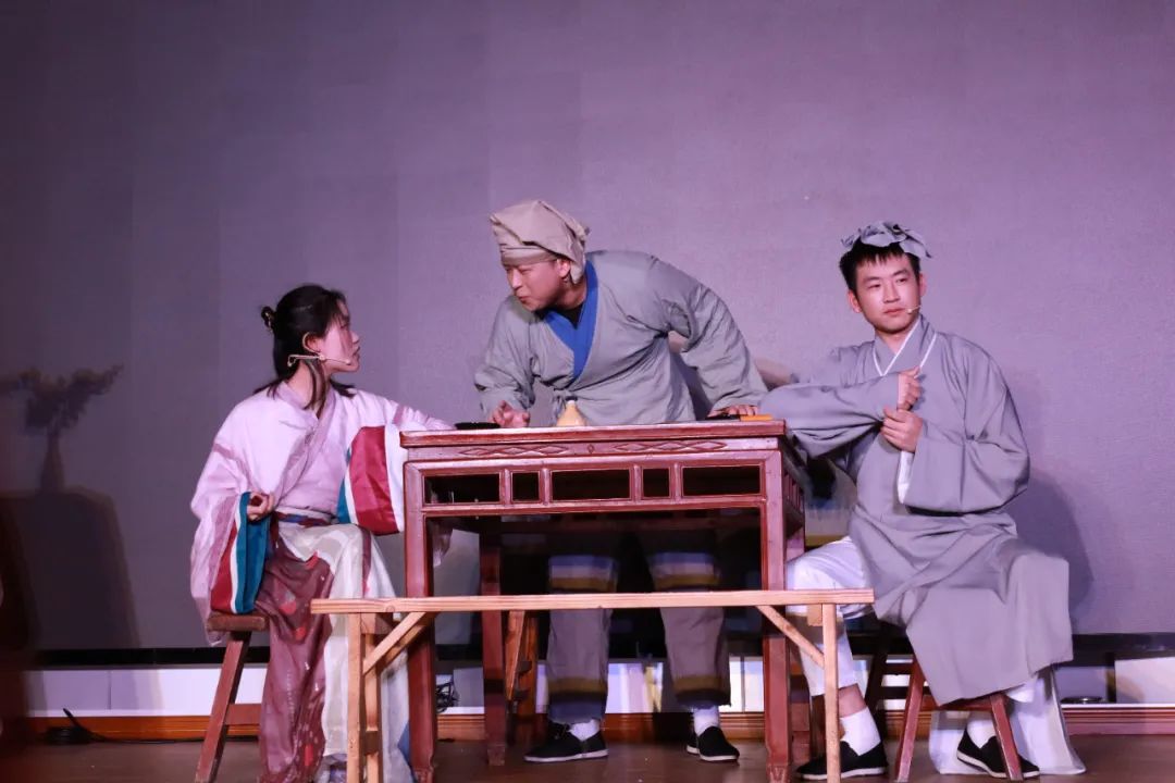 《暗恋桃花源》讲述了“暗恋”和“桃花源”两个不相干的剧组,因签约乌龙,交织在同一舞台上成就了一场悲喜交加的人生大戏。剧目中戏中戏的形式将话剧的张力与动力表现得淋漓尽致,演员们搞怪滑稽的神情,活灵活现的肢体语言,也赢得了观众们的阵阵掌声,现场氛围热烈而融洽。风禾剧团版《暗恋桃花源》获得了营养与健康所师生的一致好评。
