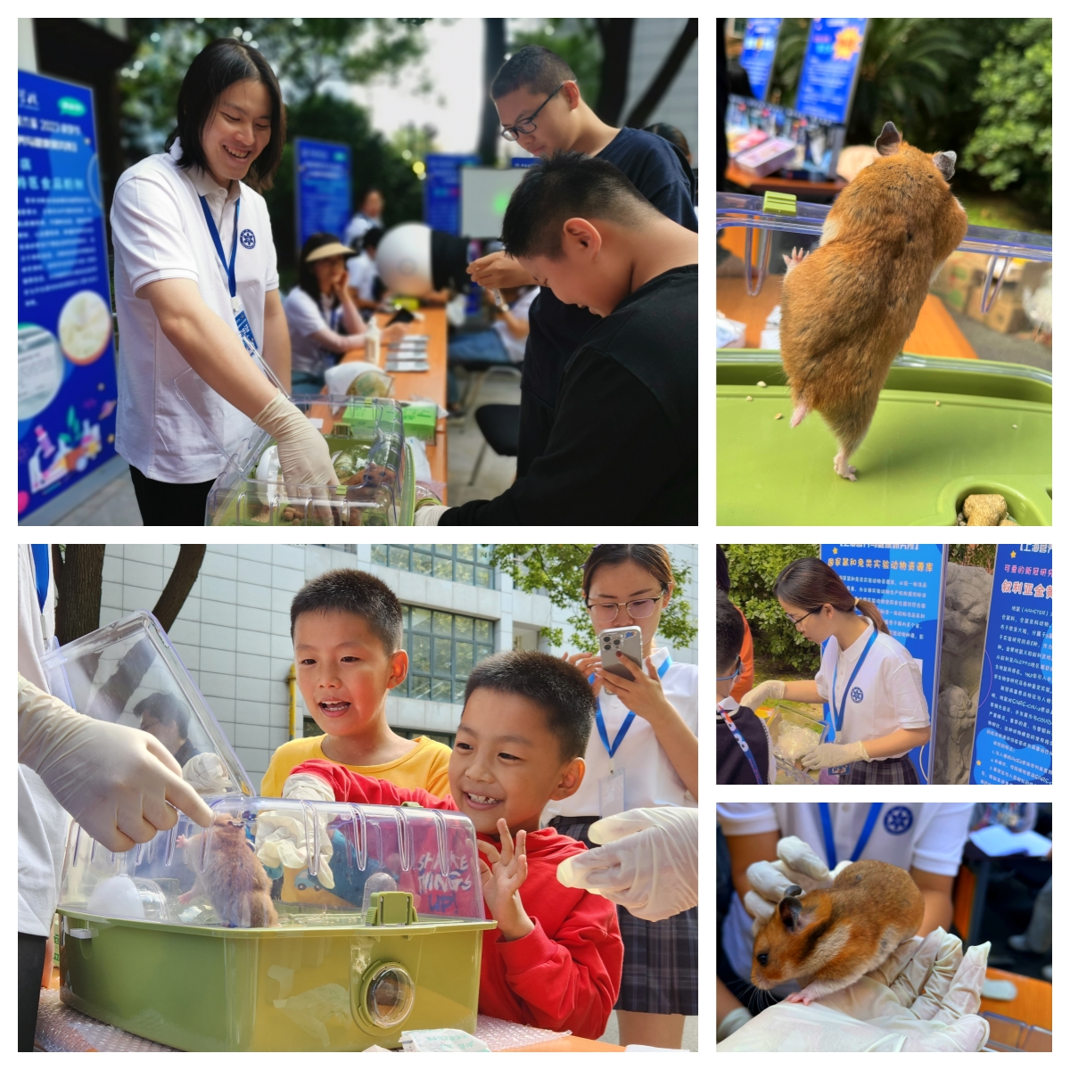 依托于营养与健康所建设的国家鼠和兔类实验动物资源库展示的“金黄地鼠”是科学节期间最受小朋友欢迎的实验动物明星,它最早来自于1930年在叙利亚ALEPPO地区捕获的3只(1雄2雌)野生地鼠,经过科学家的长期培育,已成为广泛使用的实验动物之一,如今大量用于医学生物学研究及疫苗制备、各种鉴定实验。特别是科学家们还发现,它感染新冠后表现出与人类相似的临床症状,能够帮助科学家快速评估疫苗或抗病毒治疗候选药物,是一位可爱的新冠“研究者”。