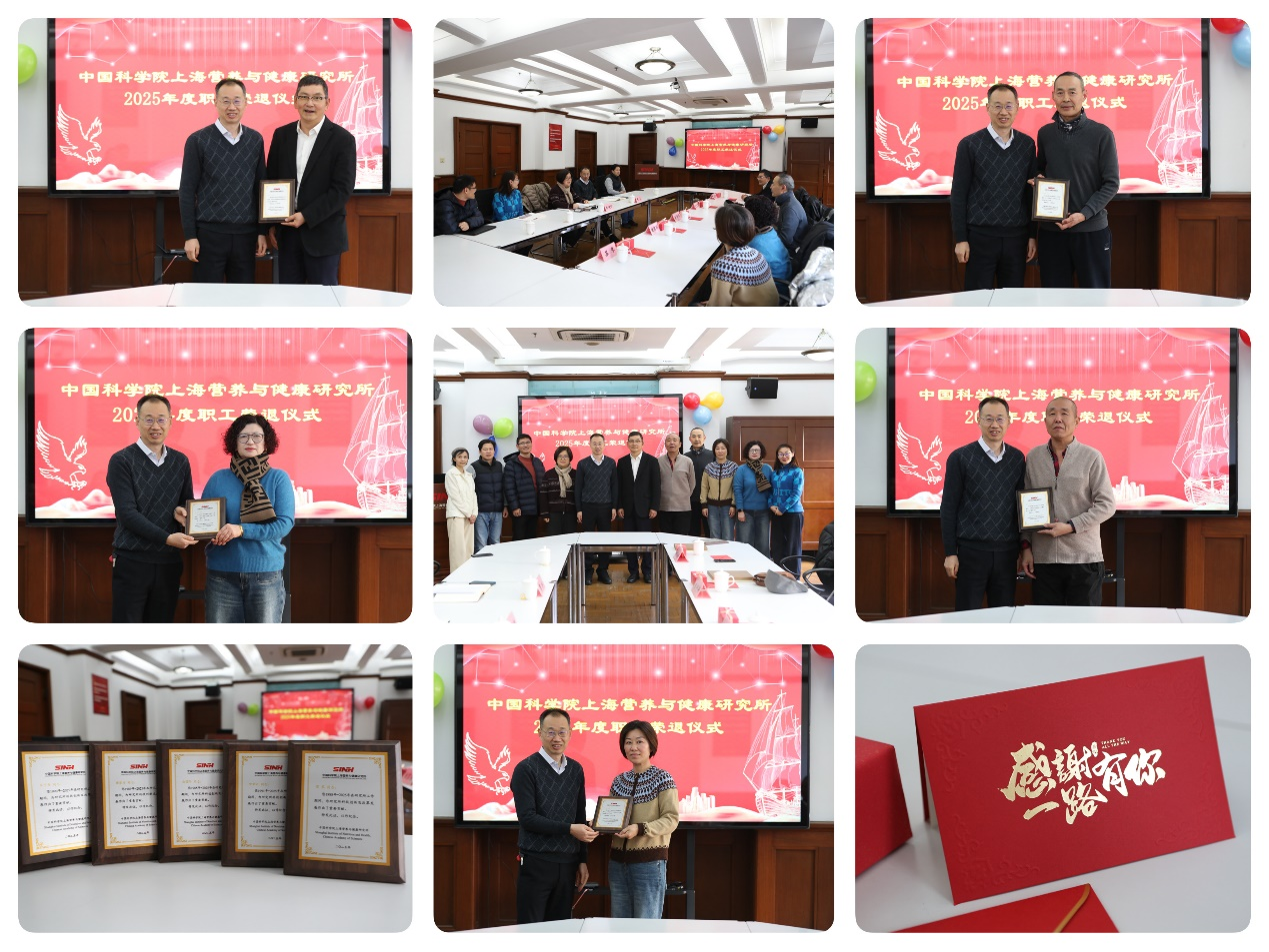 为深入贯彻落实习近平总书记关于老干部工作的重要论述,传递组织关怀和尊重,1月21日,中国科学院上海营养与健康研究所举办2025年度职工荣退仪式。研究所纪委书记曹永及相关部门负责人参加活动,与荣退职工们相聚一堂,共叙峥嵘岁月,共话美好未来。荣退仪式由研究所党委委员、人事人才处处长陈建红主持。