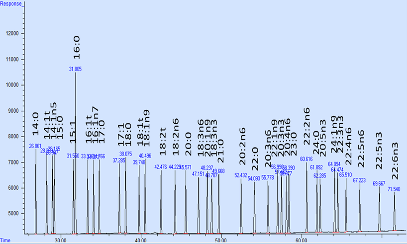 图3. 30多种中长链脂肪酸标准品谱图