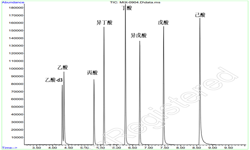 图4. 七种短链脂肪酸标准品谱图