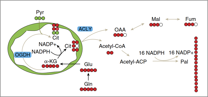 图5. 13C-谷氨酰胺标记三羧酸代谢物和脂肪酸