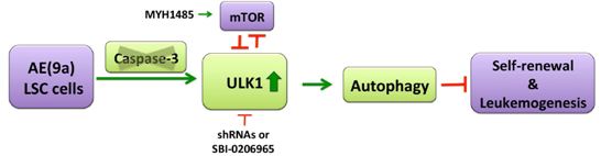 该研究阐明了蛋白水解酶Caspase-3与细胞自噬调控关键信号分子ULK1,mTOR作用并促进白血病发生的机理,研究结果为临床诊断和治疗提供了新的靶点。