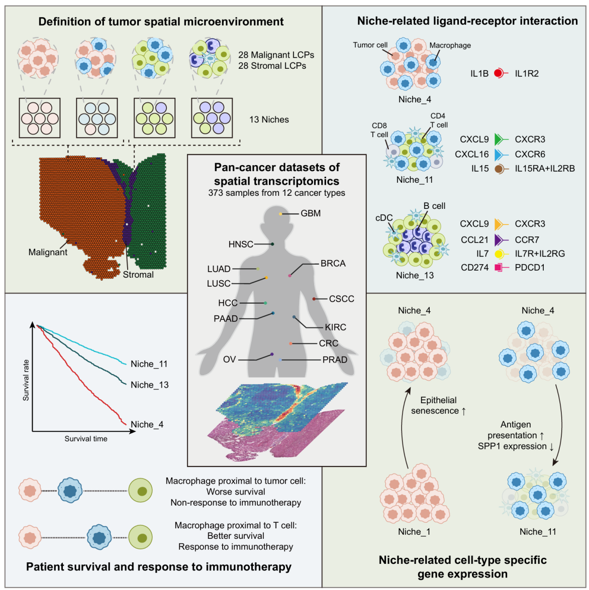 图:泛癌空间微环境解析策略与结果概览图
