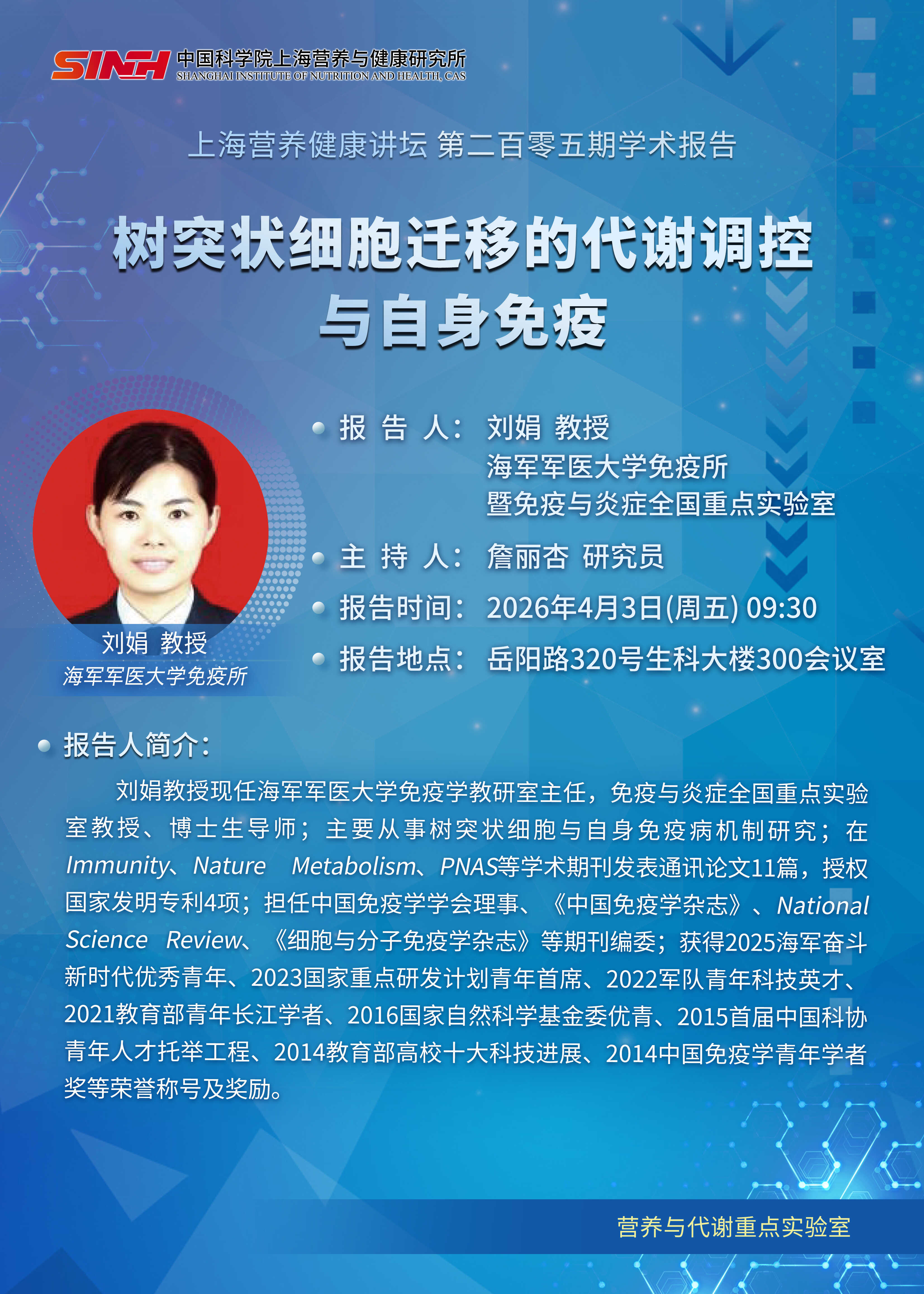 4月3日|树突状细胞迁移的代谢调控与自身免疫-上海营养健康讲坛