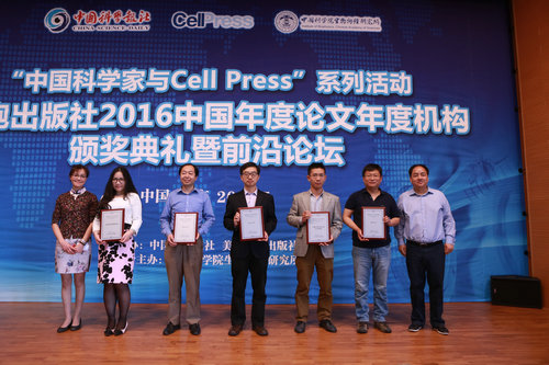 5月8日,由中国科学报社与美国细胞出版社共同主办、中国科学院生物物理研究所联合主办的2017“中国科学家与Cell Press”系列活动——细胞出版社2016中国年度论文、年度机构颁奖典礼暨前沿论坛在北京举行。在颁奖典礼上揭晓了“细胞出版社2016中国年度论文、年度机构”,六个热门领域6篇代表性论文及5所研究单位入选。