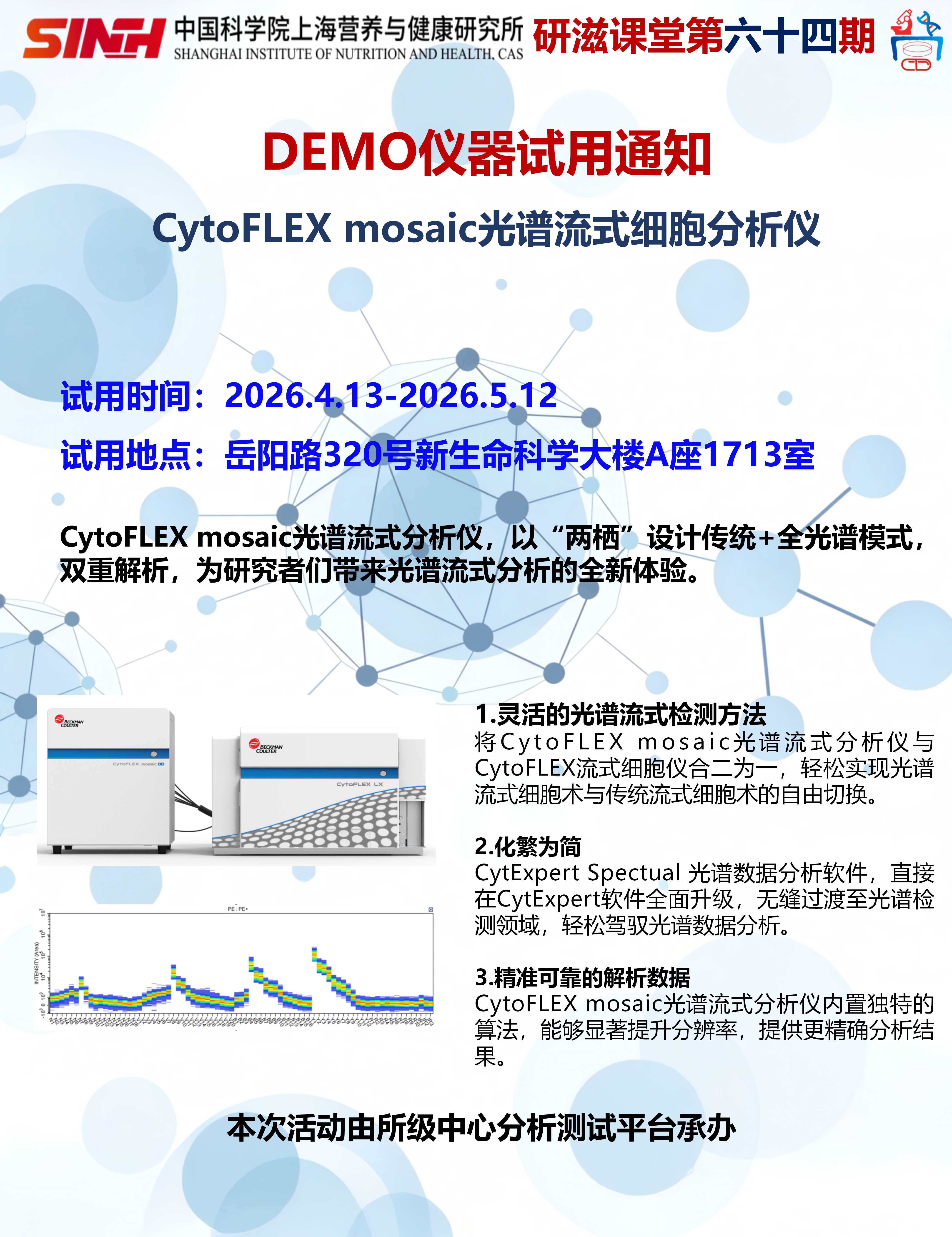 4月13日|【DEMO仪器试用通知】CytoFLEX mosaic光谱流式细胞分析仪-研滋课堂