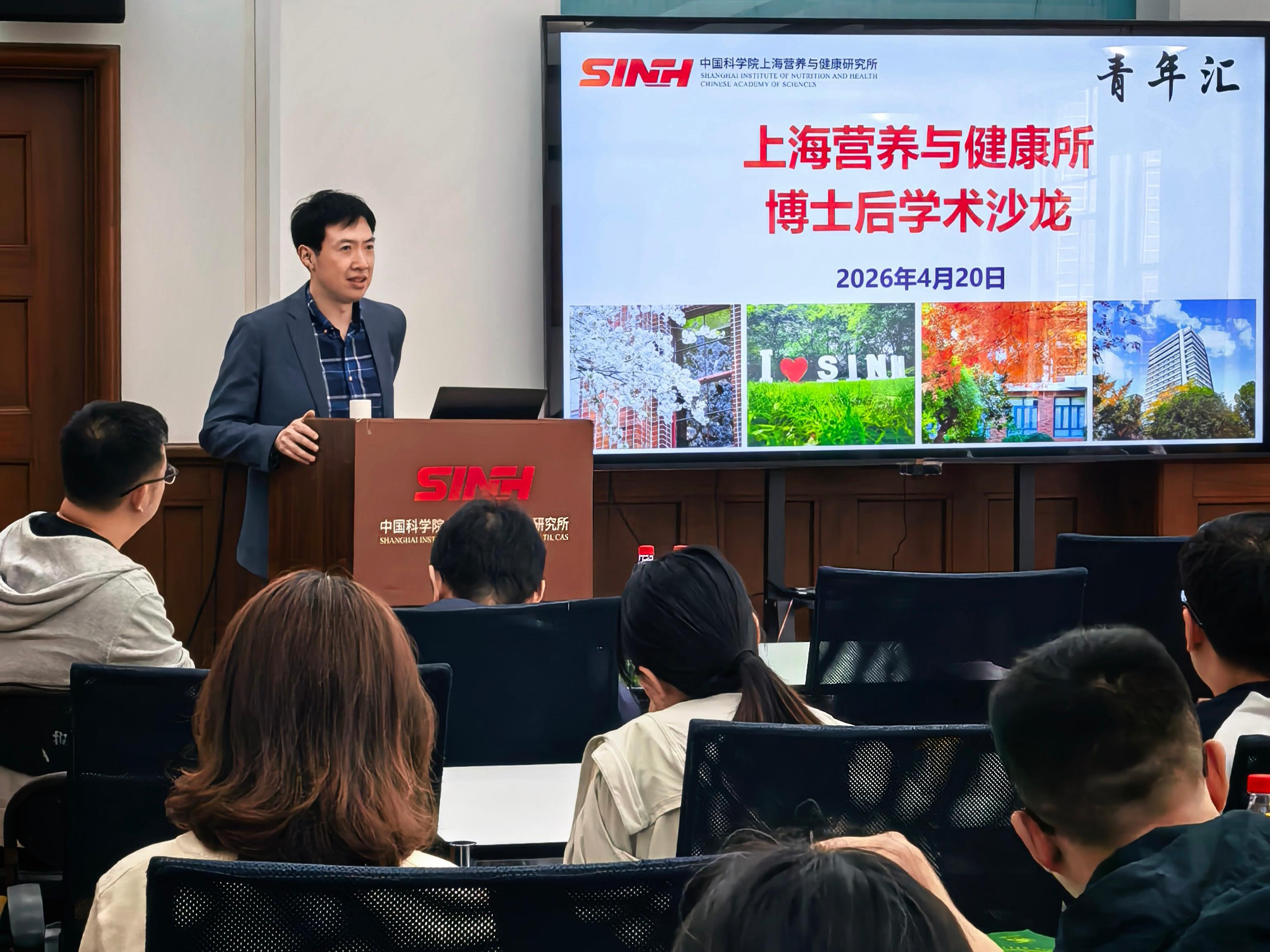 此次沙龙由周章森研究员主持,应浩副所长出席活动并作开场动员。应浩表示,博士后学术沙龙是研究所为促进青年人才成长搭建的学术交流平台,希望包括博士后群体在内的广大青年科研人员以沙龙为纽带,积极拓展学术视野、碰撞思想火花、锤炼科学表达能力,推动所内不同研究方向的深度交叉融合,在原始创新与技术攻关上实现新突破。活动中,汪学阁博士以“化疗诱导库普弗细胞分化促进肝转移免疫逃逸”为题,围绕结直肠癌肝转移治疗困境这一科学难题,系统介绍了团队在肿瘤发生发展与治疗耐受机制领域的最新研究突破。她结合自身科研经历,分享了从课题设计、实验攻关到成果凝练的科研心得。合作导师秦骏研究员对报告进行深度专业点评,对其中的关键科学问题展开延伸解读,进一步剖析了该研究成果的科学价值与临床转化前景。随后的交流互动环节中,在场科研人员踊跃提问,现场交流气氛热烈。